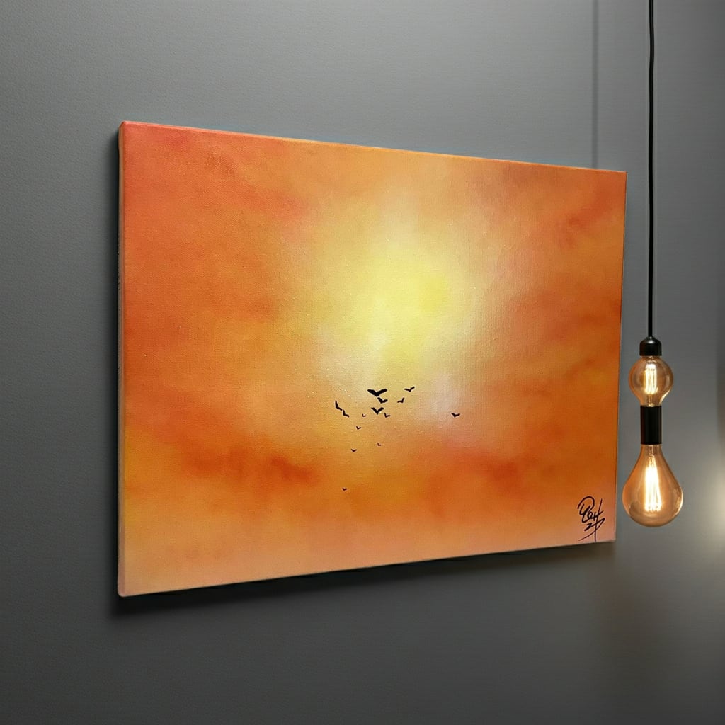 本作品は、スプレーアーティスト山本剛之による一点物のスプレーアート原画作品『夕日』です。